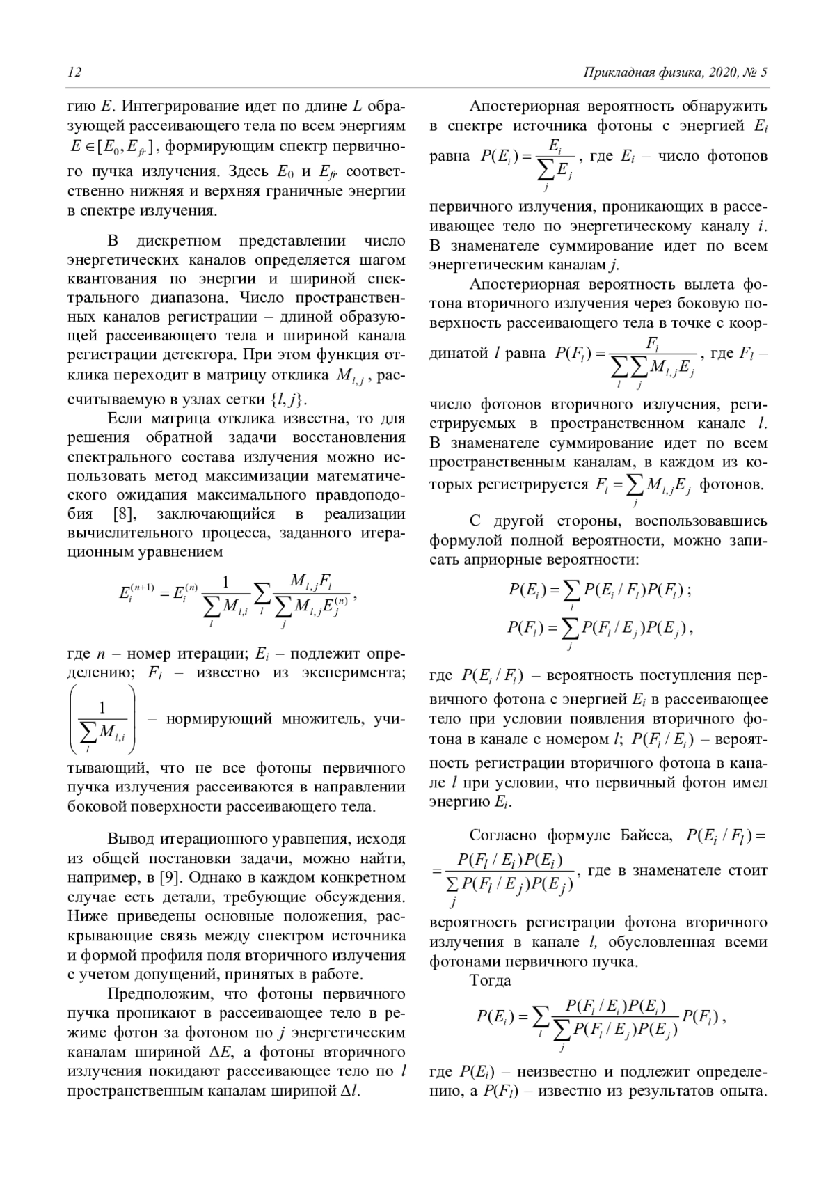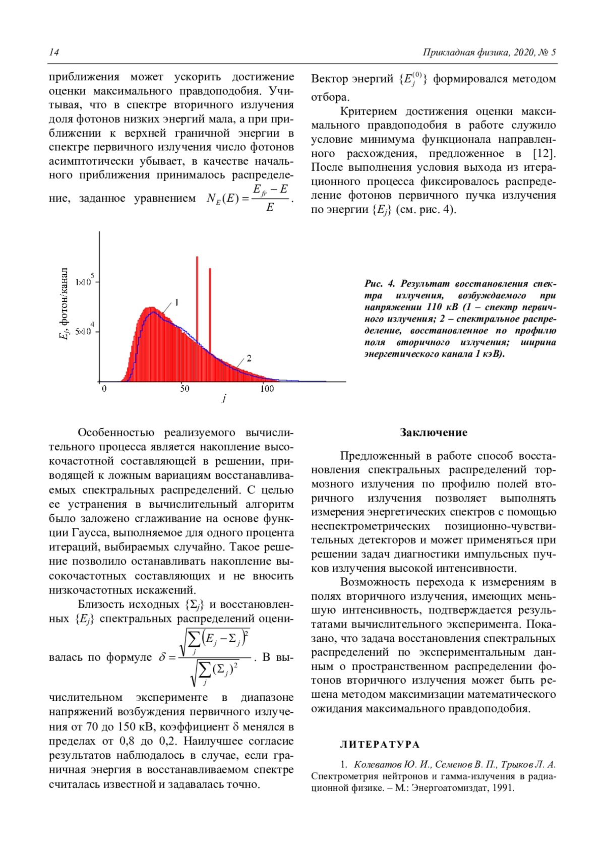 Возможность перехода к измерениям в полях вторичного излучения, имеющих меньшую интенсивность, подтверждается результатами вычислительного эксперимента. Показано, что задача восстановления спектральных распределений по экспериментальным данным о пространственном распределении фотонов вторичного излучения может быть решена методом максимизации математического ожидания максимального правдоподобия.