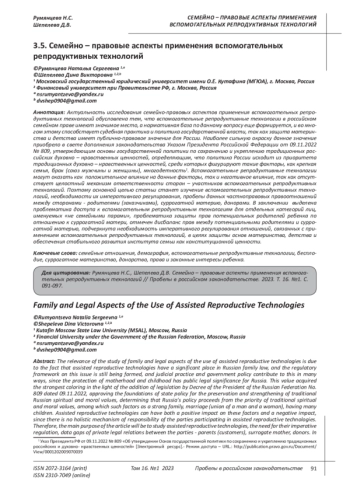 Bychkov A.G. “Legal regulation of assisted reproductive technologies”// Legal guide of the head. - 2021. №. 12. - pp. 66-75.