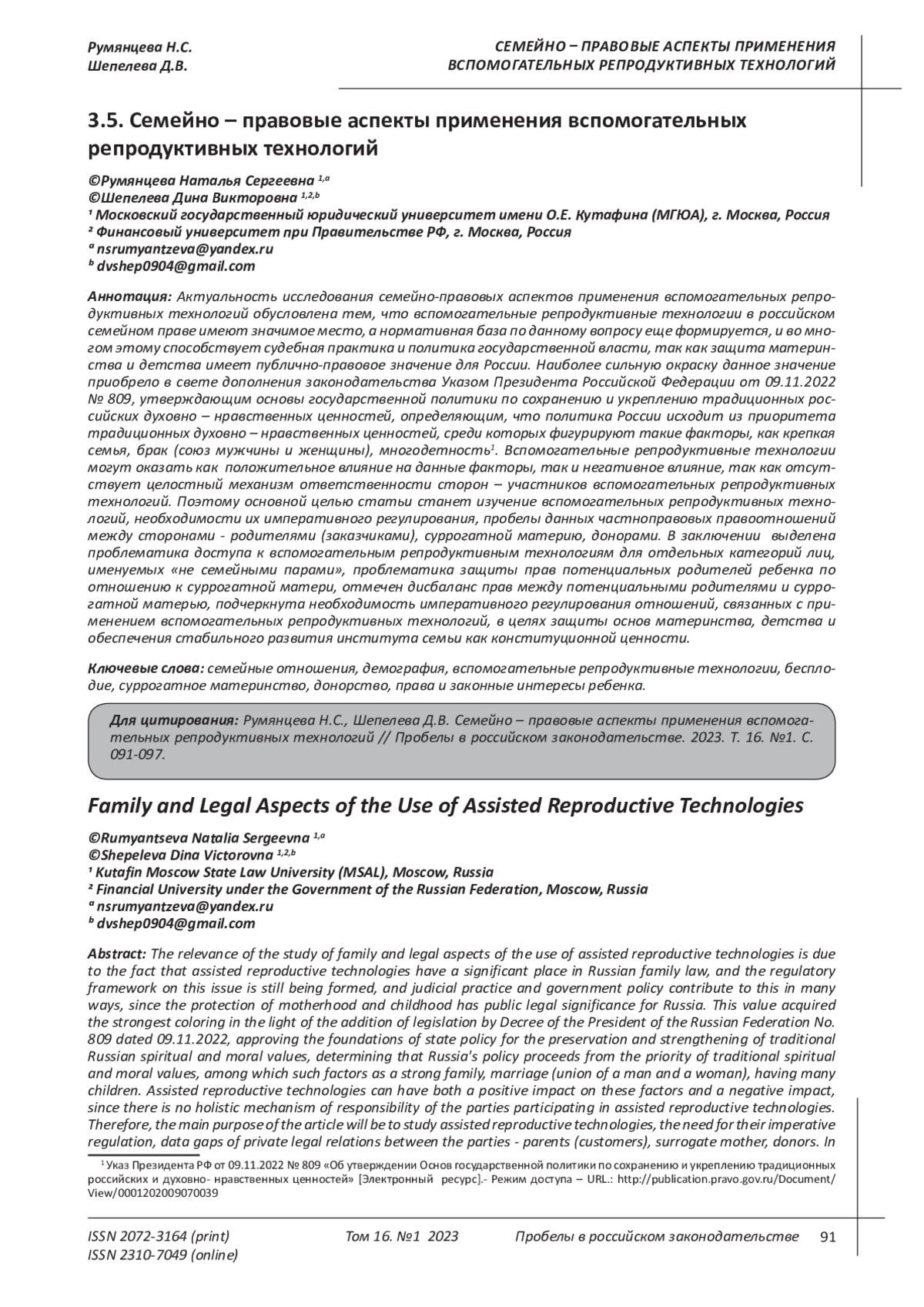 Pozdnyakova L.S. “Gaps in the legal regulation of the activities of medical organizations using ART. Solutions”// Collection of abstracts of speeches of participants of the XXXII Annual International Conference of the Russian Association of Human Reproduction, 2022.- pp. 17-19 [Electronic resource].- Access mode - URL.: https://rahr.ru/d_pech_mat_konf/Tezis_RARCH_2022.pdf.
