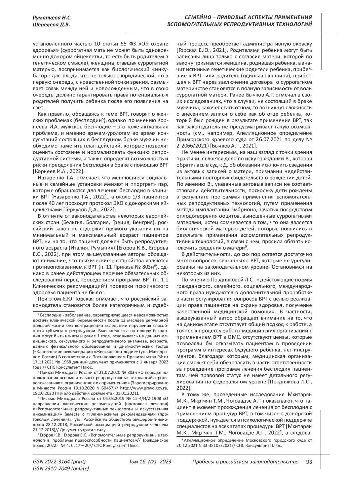 4. Егоров К.В., Егорова Е.С. Вспомогательные репродуктивные технологии: проблемы правоспособности пациентов // Гражданское право. 2022. - № 4. С. 17 - 20// СПС Консультант Плюс. EDN: WJKENU