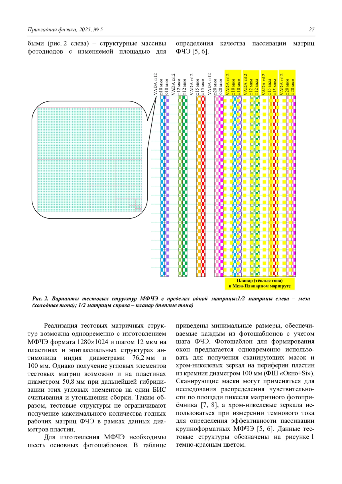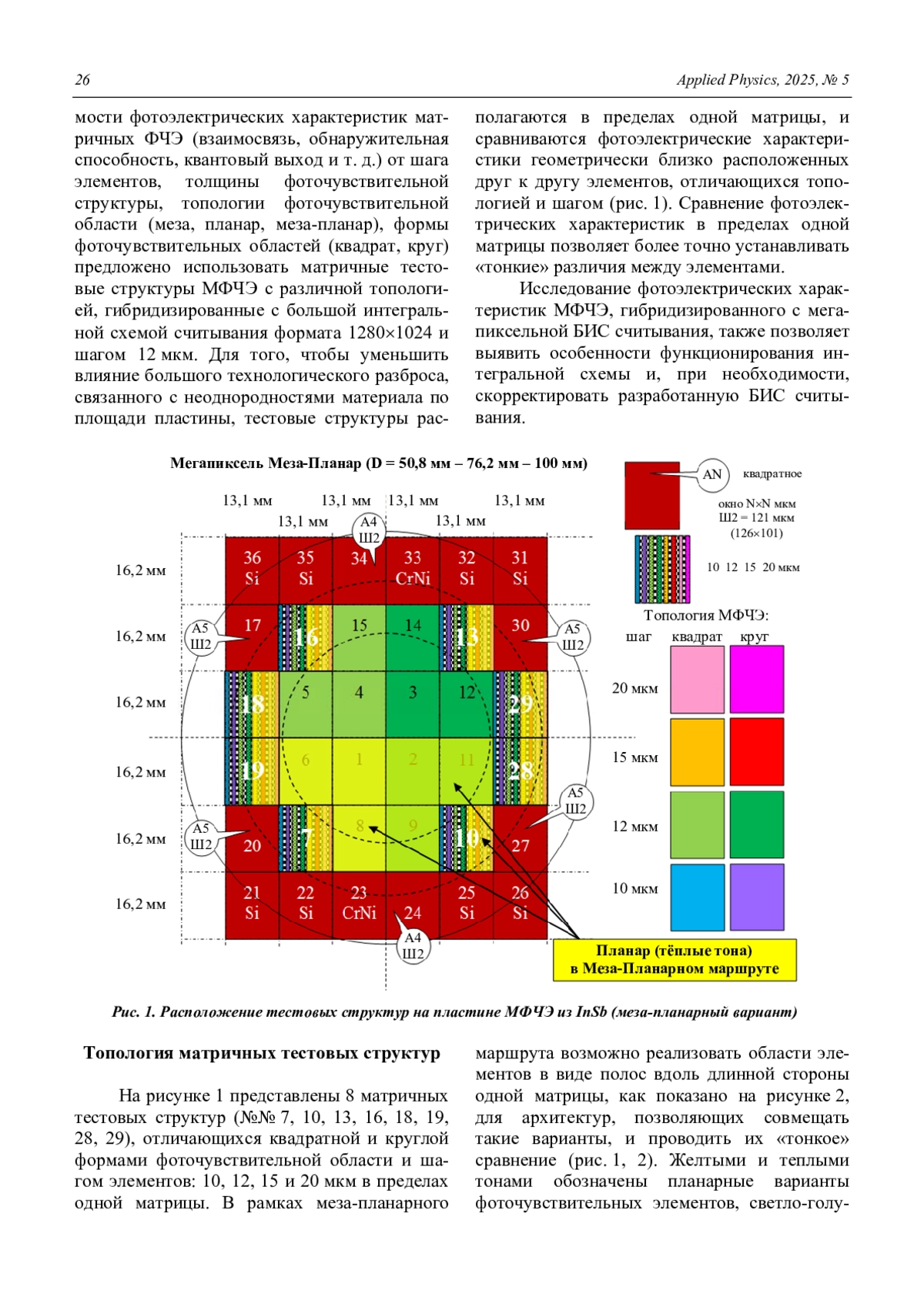 Тестовые структуры для исследования зависимости фотоэлектрических характеристик крупноформатных МФПУ от топологии элементов на основе InSb