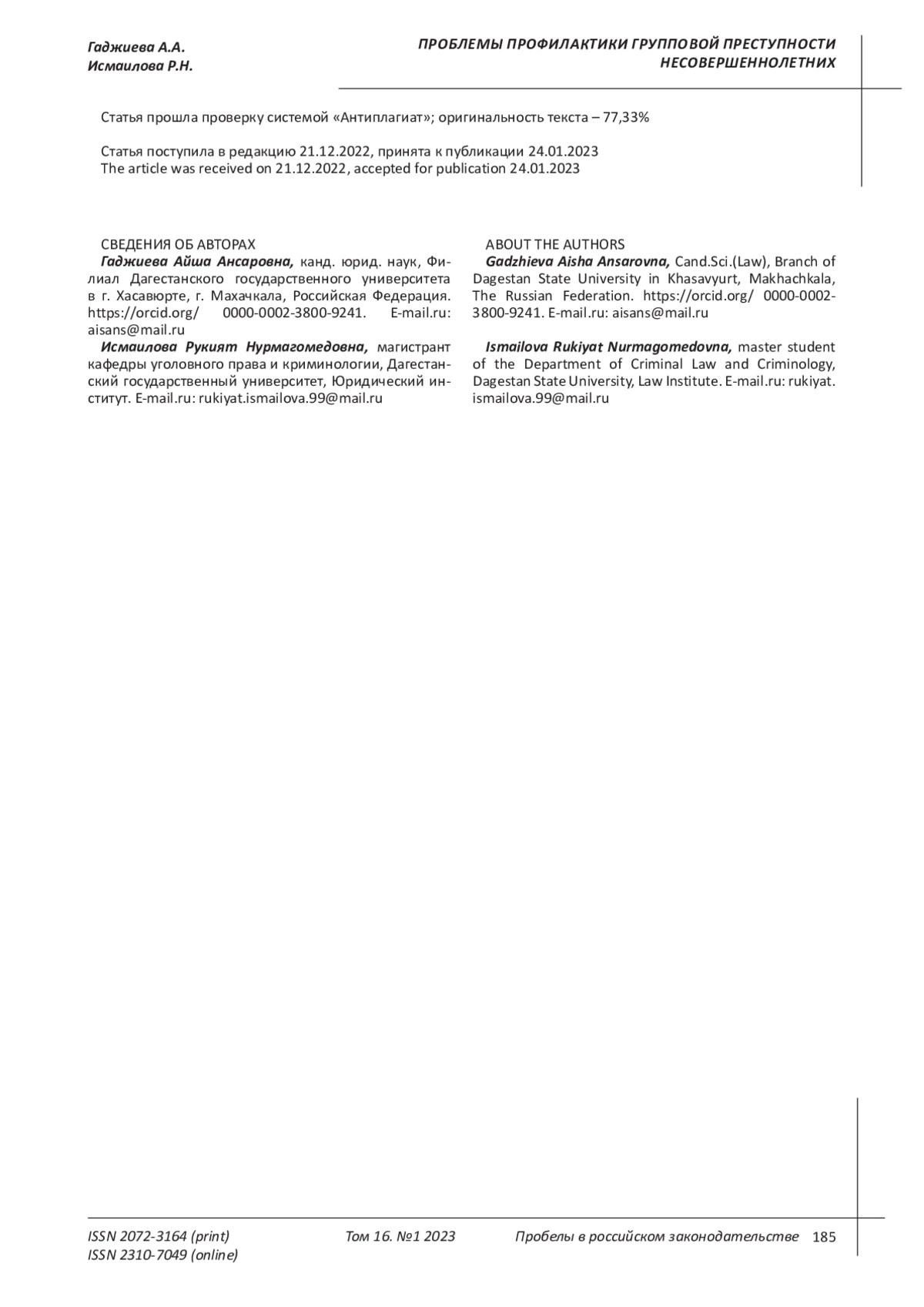 Statistical data on the state of legality and prosecutor’s supervision in the territory of the Republic of Dagestan, September 2020. [electronic text] file:///C:/Users/Aishat/Downloads/ 202020.pdf [accessed 05.01.2023].