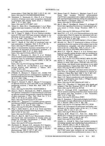145. Ren X., Zhou L., Terwilliger R., Newton S.S., de Araujo I.E. Sweet taste signaling functions as a hypothalamic glucose sensor // Front. Integr. Neurosci. 2009. V. 3. P. 12. DOI: 10.3389/neuro.07.012.2009