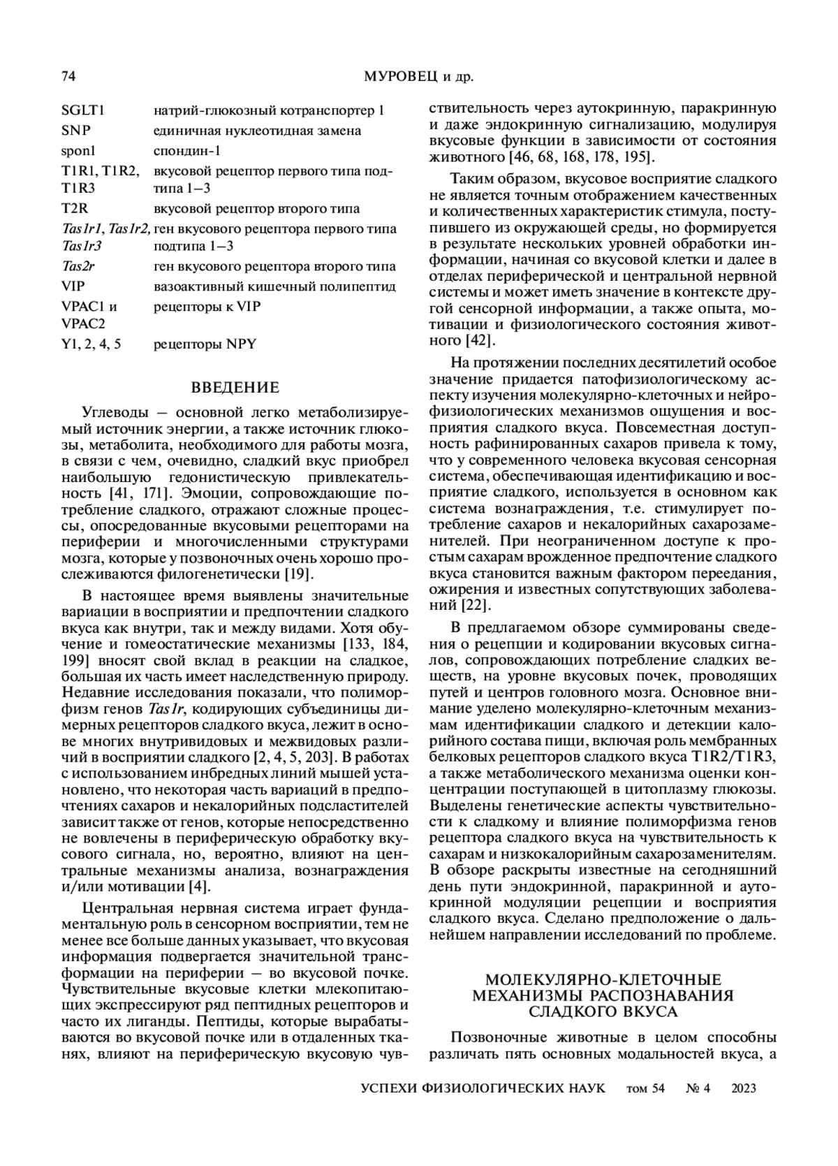 186. von Molitor E., Riedel K., Krohn M. et al. Sweet taste is complex: signaling cascades and circuits involved in sweet sensation // Front. Hum. Neurosci. 2021. V. 15. P. 667709. DOI: 10.3389/fnhum.2021.667709 EDN: QMXKCA