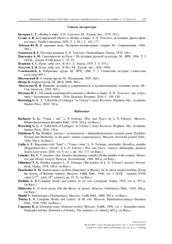 Реконструируются причины интереса Толстого к историческому сюжету о самозванце. Сопоставлены три редакции рассказа о Пугачеве конца 1860-х – середины 1870-х гг., рассмотрены его творческая история и взаимосвязи с другими произведениями «Первой русской книги для чтения» (1875). В центре внимания находится поэтика эквивалентностей – повествовательная техника, которую писатель именовал «лабиринтом сцеплений». С ее помощью, как показано в работе, писателю удалось включить рассказ о Пугачеве в широкий контекст отечественной и мировой истории, общественных и природных закономерностей, соотнести образ самозванца с известными персонажами фольклора и художественной литературы.