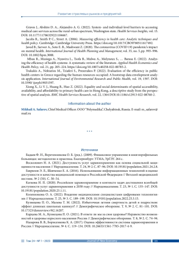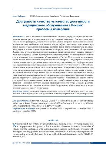 САФАРОВ М. А. QUALITY OF ACCESSIBILITY VS QUALITY ACCESSIBILITY OF MEDICAL SERVICE IN RUSSIA: MEASUREMENT ISSUES // JOURNAL OF NEW ECONOMY. 2023. Т. 24 № 1