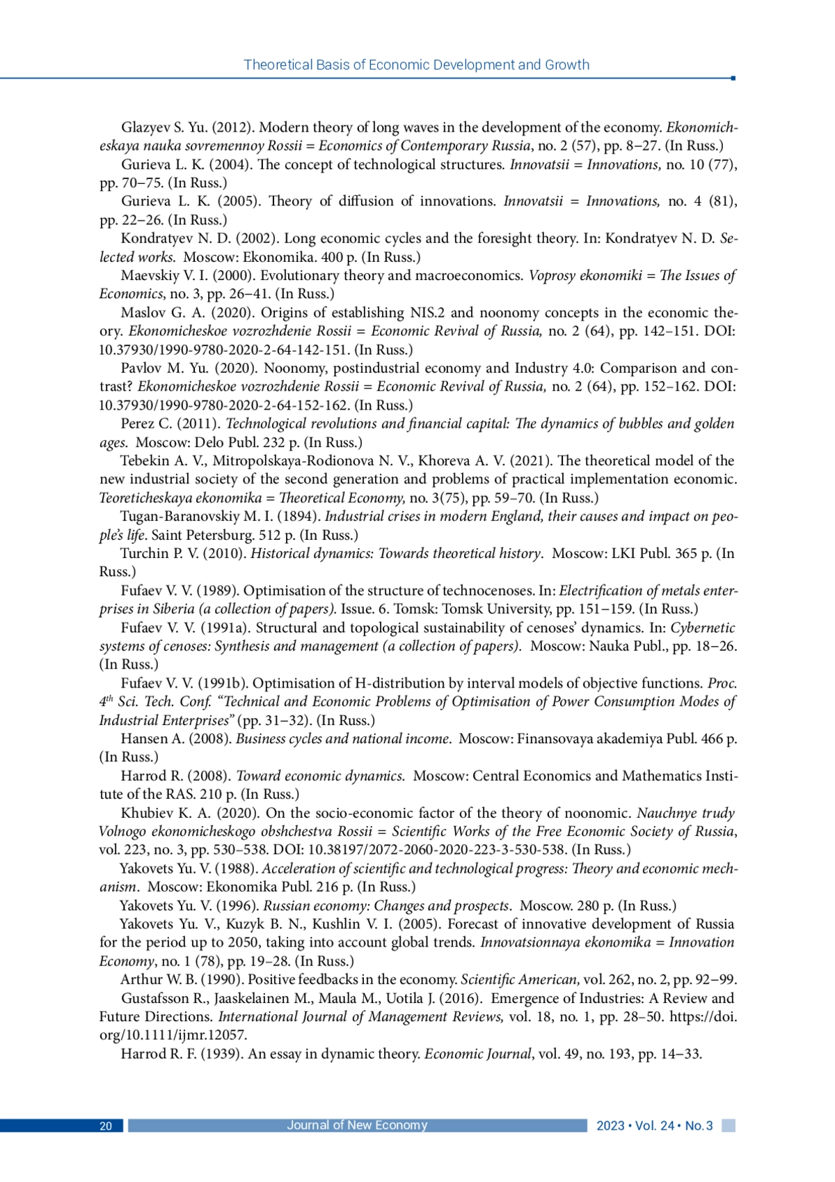 1. Бодрунов С. Д. (2018а). Ноономика как новая парадигма сбалансированного эколого-экономико-социотехнологического развития // Энергия: экономика, техника, экология. № 9. С. 32-36. DOI: 10.31857/S023336190001709-5 EDN: YOTNVB