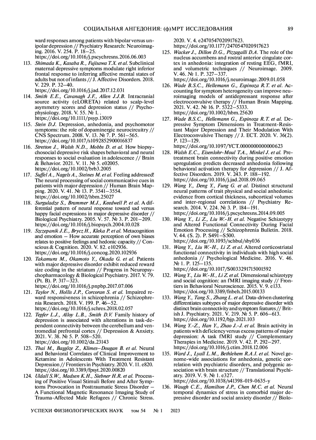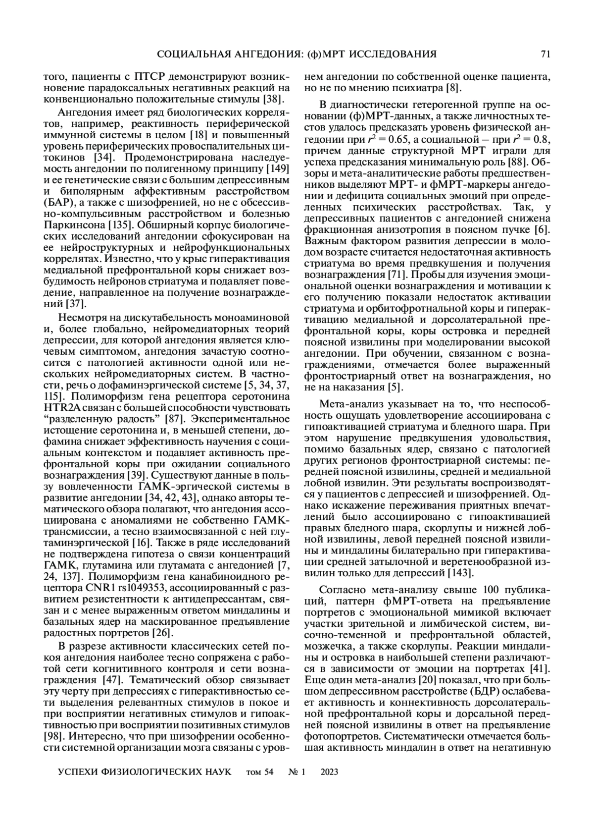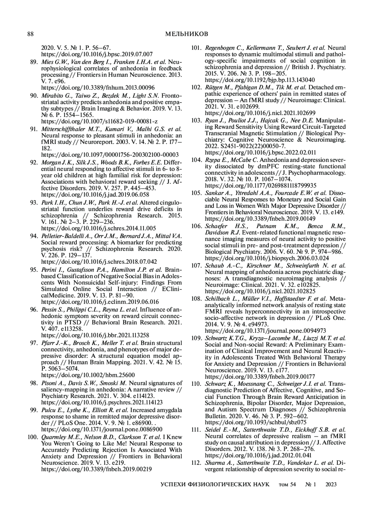 МЕЛЬНИКОВ М. Е. СОЦИАЛЬНАЯ АНГЕДОНИЯ: (Ф)МРТ ИССЛЕДОВАНИЯ // УСПЕХИ ФИЗИОЛОГИЧЕСКИХ НАУК. 2023. Т. 54 № 1 (5 СТ.)