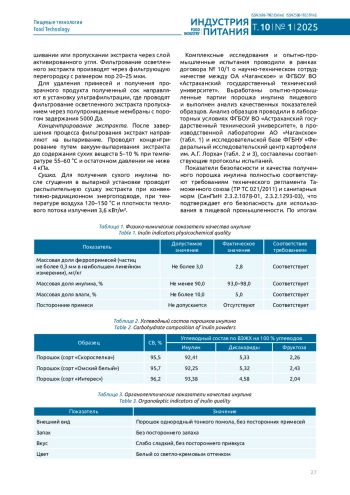 Ключевые фразы: инулин, топинамбур, экстракция, ультразвук, распылительная сушка, технология производства, пищевая промышленность