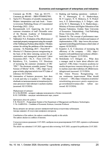 8. Оборина А.В. Реинжиниринг бизнес-процессов, как основа системы нормирования труда административно-управленческого персонала// Экономика труда-2023. - № 8. - С. 1219-1236. EDN: GKKYST