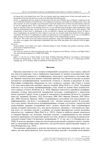 24. Gates St-Pierre C. Needles and bodies: A microwear analysis of experimental bone tattooing implements // J. Archaeol. Sci. 2018. Rep. 20. P. 881-887. https://doi.org/10.1016/j.jasrep.2017.10.027