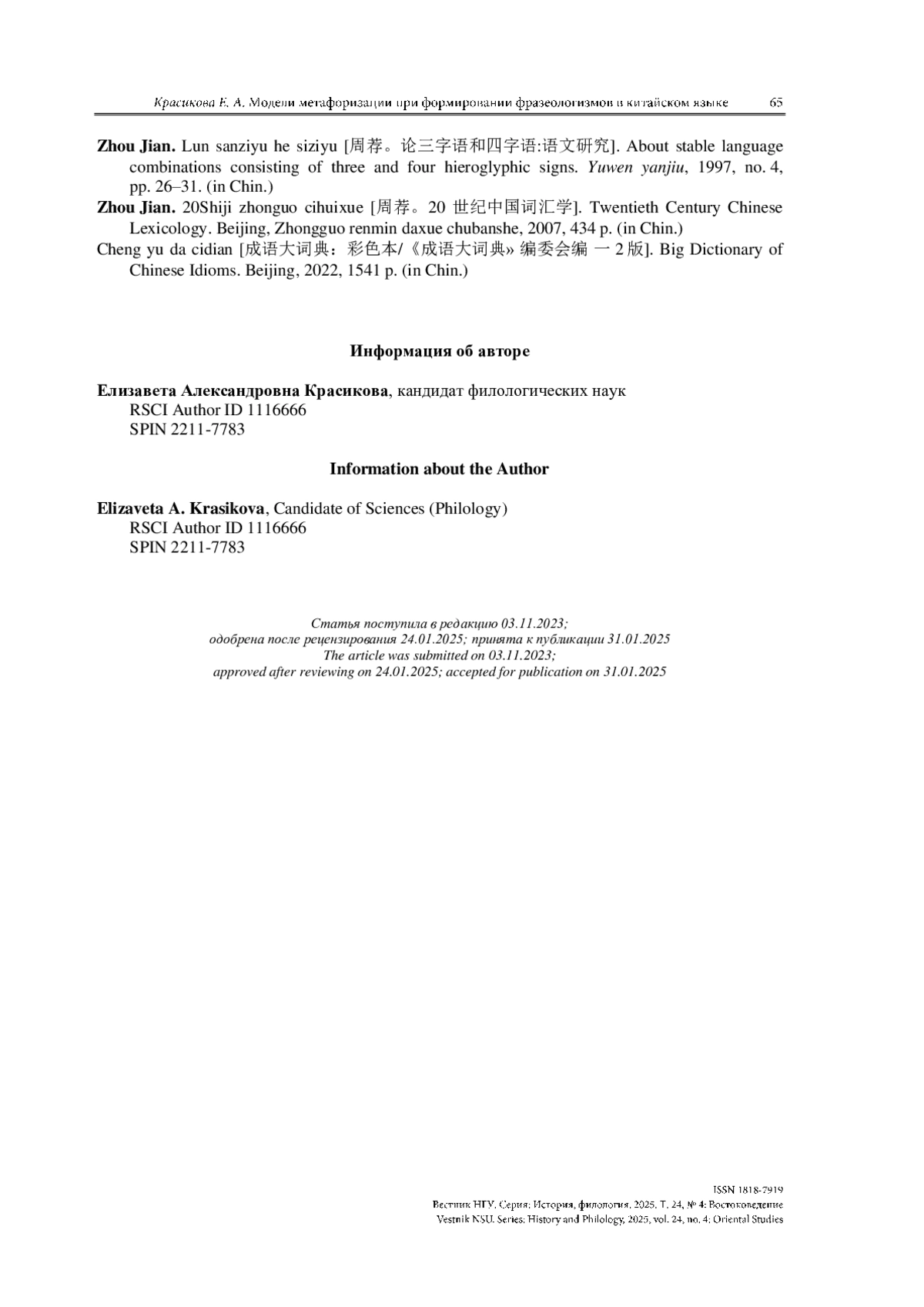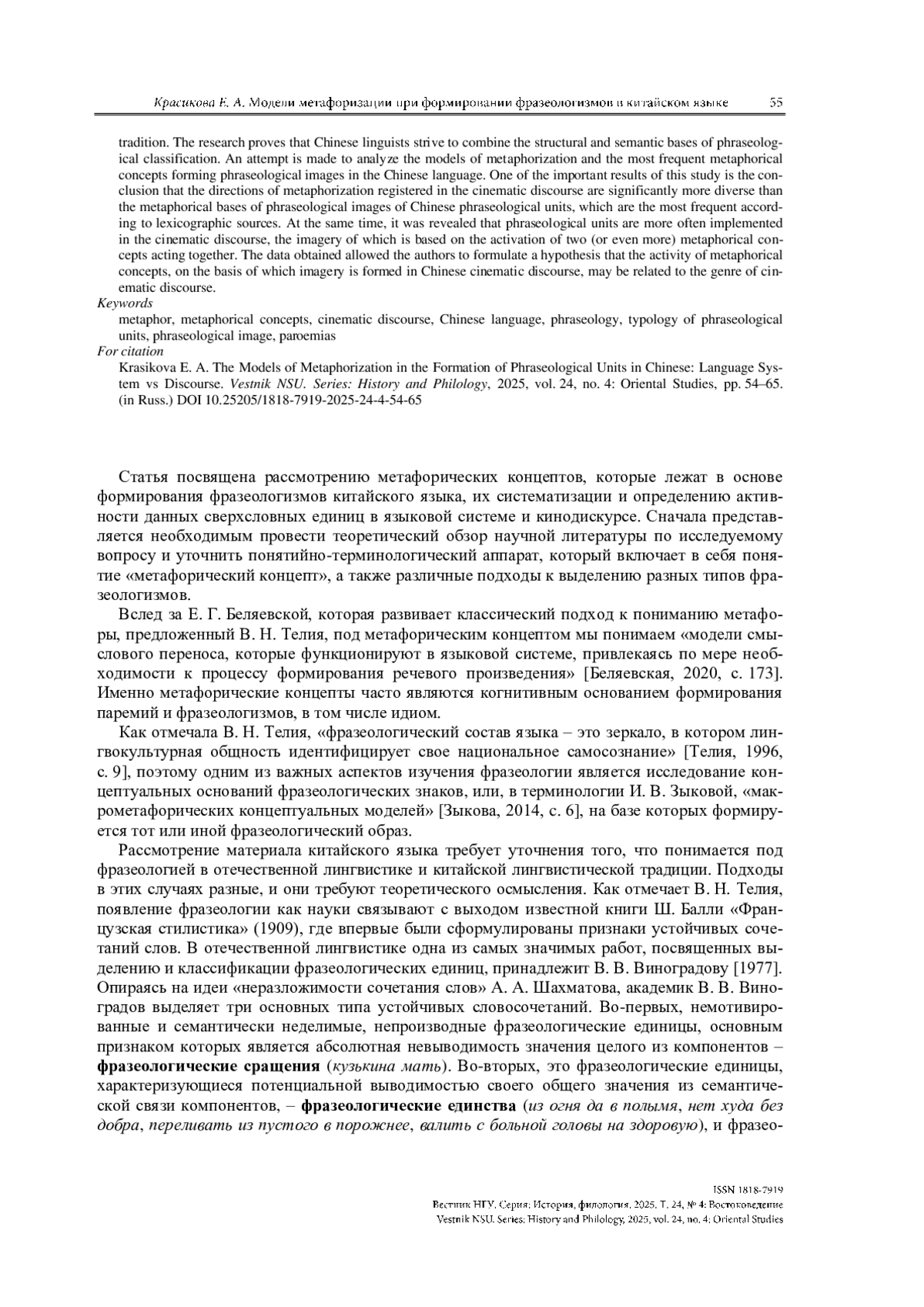 4. Красикова Е. А. Креативный потенциал форм обращения в китайском кинодискурсе // Когнитивные исследования языка. 2023. № 3-2 (54) С. 463-467.