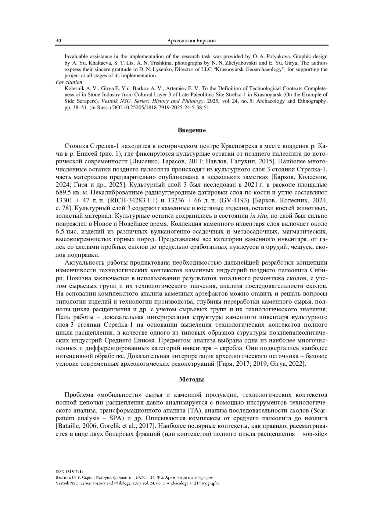 2. Барков А. В., Колесник А. В. Клад микропластин из позднепалеолитического слоя стоянки Стрелка-1 в Красноярске // // Вестник НГУ. Серия: История, филология. 2024. Т. 23, № 7: Археология и этнография. С. 73-84. https://doi.org/10.25205/1818-7919-2024-23-7-73-84
