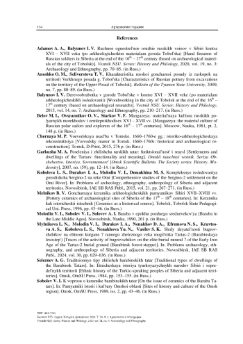12. Соболев В. И. К вопросу о керамике барабинских татар // Памятники истории и культуры Омской области. Омск: ОмГу, 1989. Вып. 2. С. 43-46.