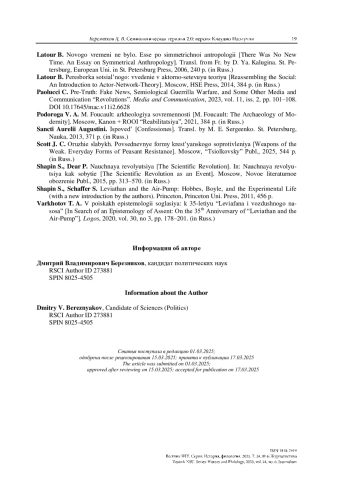 1. Августин Блаженный. Исповедь / Пер. М. Е. Сергеенко. СПб.: Наука, 2013. 371 с. Вархотов Т. А. В поисках эпистемологии согласия: к 35-летию «Левиафана и воздушного насоса» // Логос. 2020. Т. 30, № 3. С. 178-201.