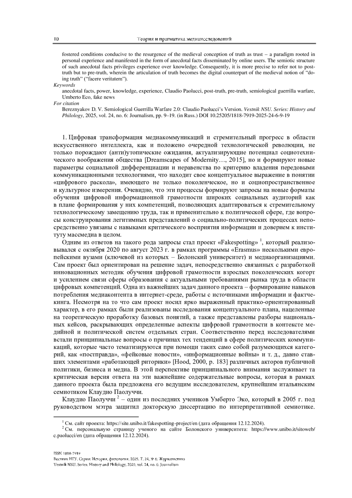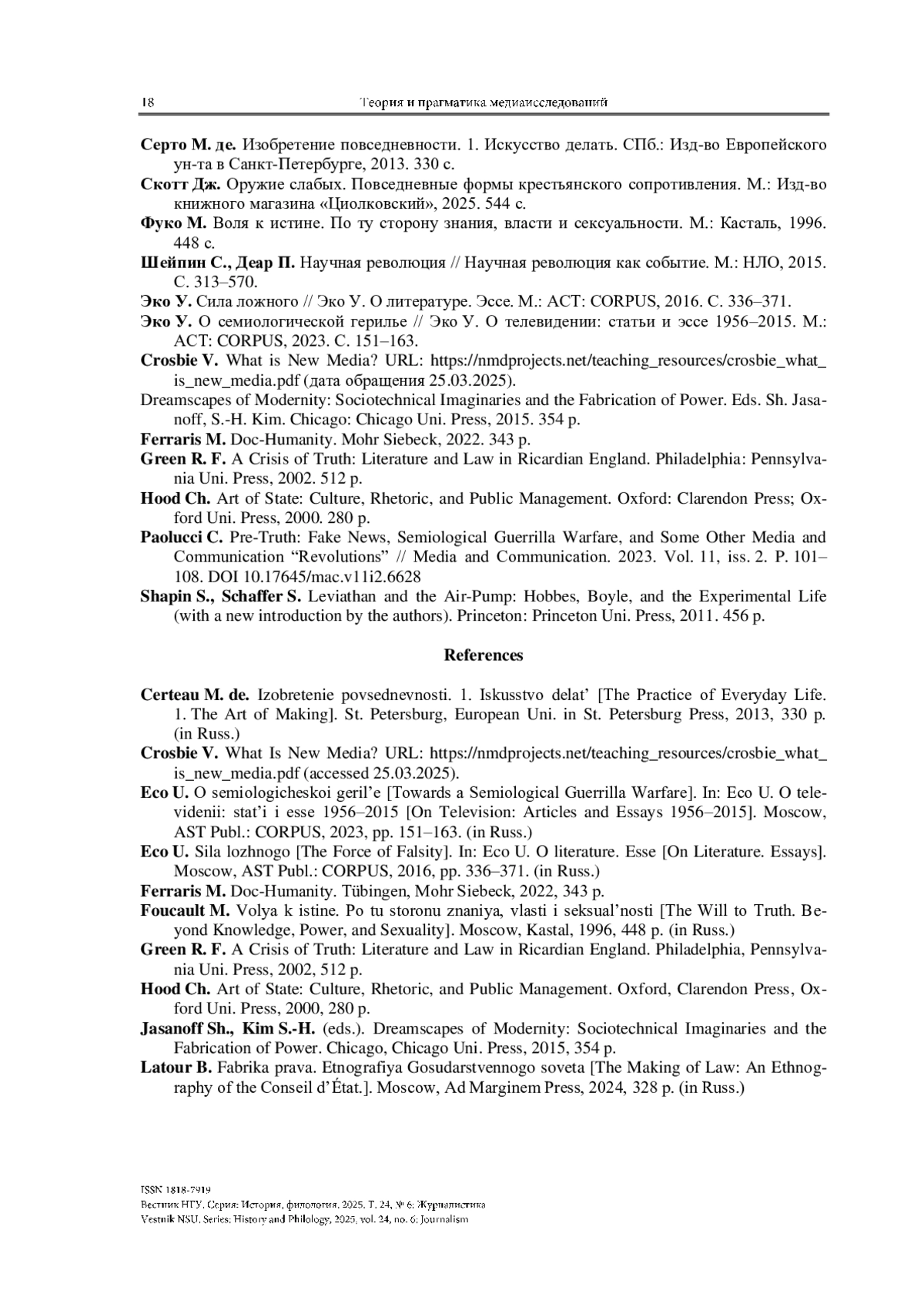 17. Paolucci C. Pre-Truth: Fake News, Semiological Guerrilla Warfare, and Some Other Media and Communication “Revolutions” // Media and Communication. 2023. Vol. 11, iss. 2. P. 101-108. https://doi.org/10.17645/mac.v11i2.6628