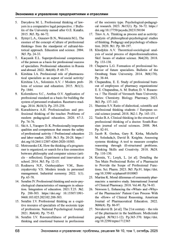 15. Серафимович И.В. Профессиональное мышление как когнитивный ресурс специалистов социономического типа профессий. Национальный психологический журнал. 2021. № 4 (44). С.75-83. EDN: BPFFOL