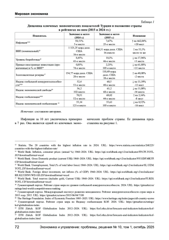 17. Страшко Е. В., Шкайдерова Т. В. Инфляция и девальвация в Турции: причины и результаты // Управление в условиях глобальных мировых трансформаций: экономика, политика, право. - 2023. - С. 47-51. EDN: QUTROL