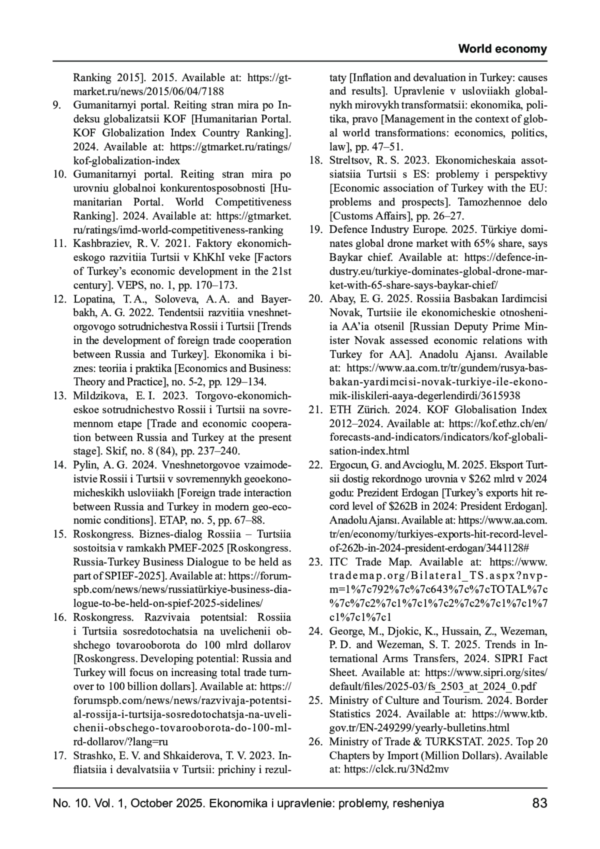 18. Стрельцов Р. С. Экономическая ассоциация Турции с ЕС: проблемы и перспективы // Таможенное дело. - 2023. - С. 26-27. EDN: LCYQGV