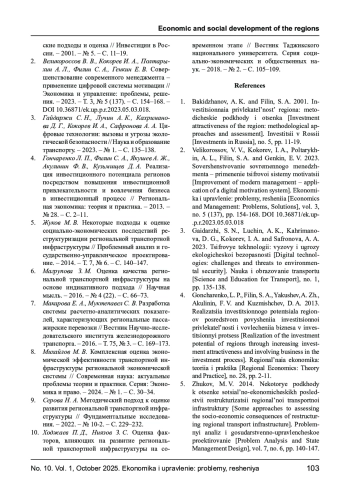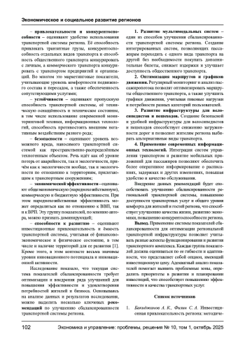 Региональная транспортная инфраструктура играет ключевую роль в развитии экономики и обеспечении мобильности населения. Чтобы её функционирование было эффективным, необходимо учитывать много факторов, в том числе и трудно измеряемых в стоимостном выражении, включая доступность, безопасность, устойчивость и экологическую приемлемость [10].