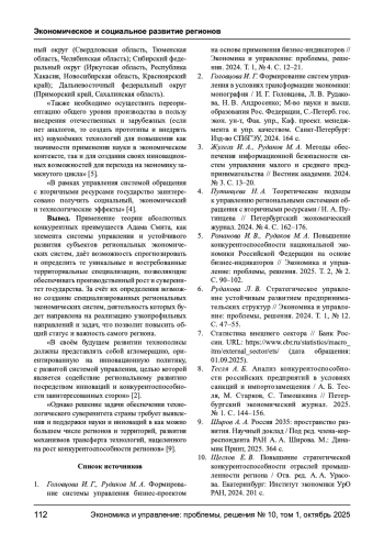 5. Романова И. В., Рудаков М. А. Повышение конкурентоспособности национальной экономики Российской Федерации на основе бизнес-индикаторов // Экономика и управление: проблемы, решения. 2025. Т. 2, № 2. С. 90-102. EDN: ZAWFFN