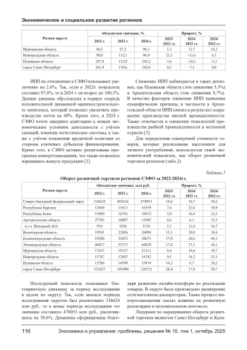 Дизайн исследования: в качестве методологической базы для проведения анализа социально-экономических показателей СЗФО были взяты такие методы, как метод группировок, индексный метод, динамический метод и две группы показателей - экономические (индекс промышленного производства, оборот розничной торговли регионов, инвестиции в основной капитал регионов) и социальные (начисленная средняя заработная плата регионов, индекс потребительских цен к прошлому периоду регионов, численность безработных к прошлому периоду регионов).