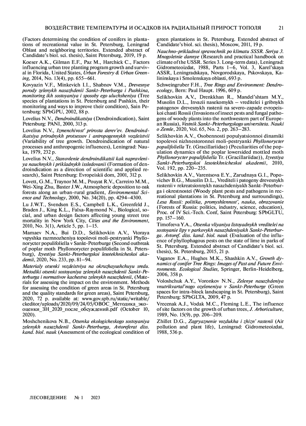 21. Федорова Н.Б. Зеленые насаждения Санкт-Петербурга и мониторинг их состояния // Лесной вестник. 2009. № 5. С. 202-206. EDN: KXXXGT