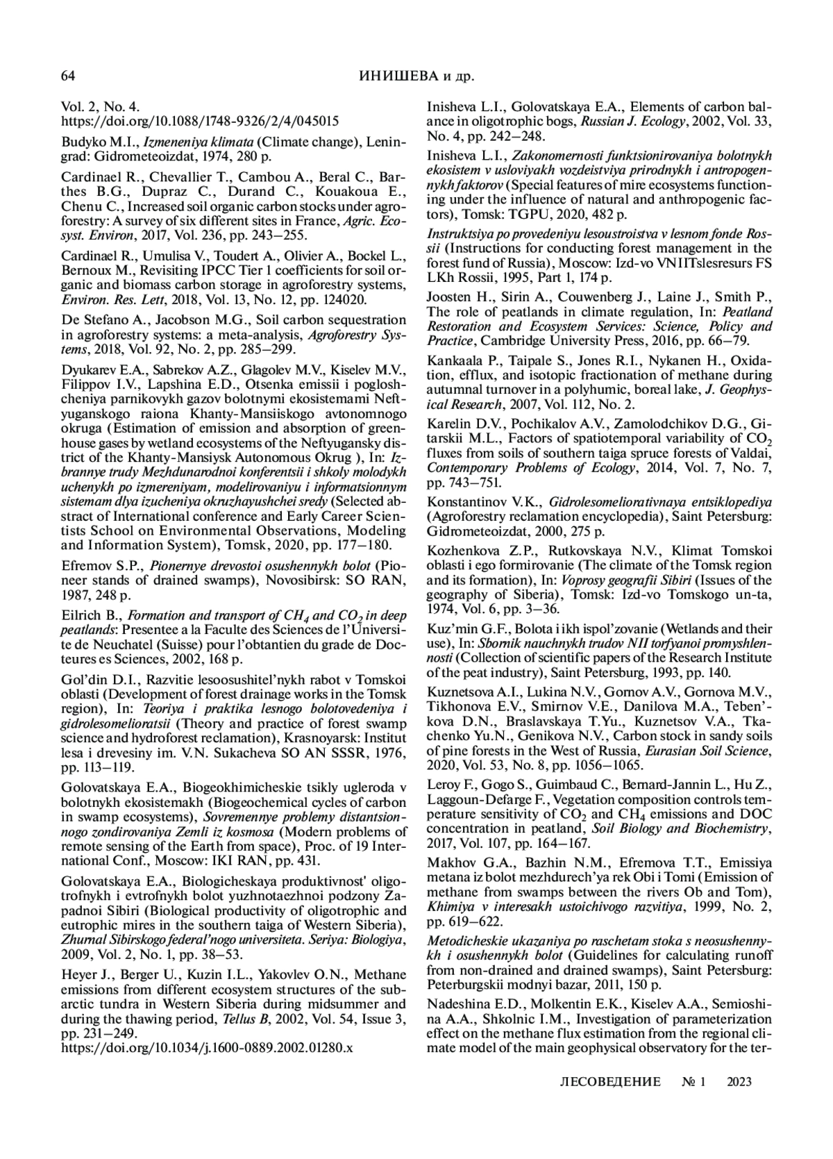 34. Inisheva L.I., Golovatskaya E.A. Elements of carbon balance in oligotrophic bogs // Russian J. Ecology. 2002. V. 33. № 4. P. 242–248. EDN: LHAPXD
