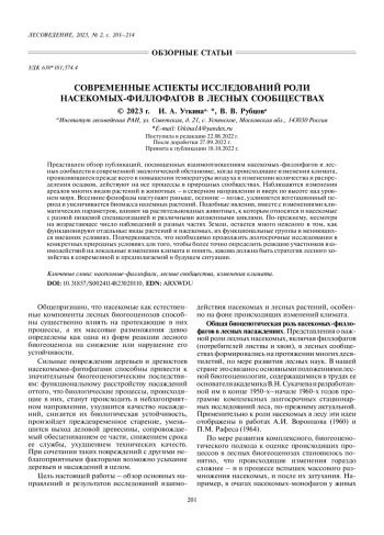 28. Рубцов В.В., Уткина И.А. Реакция насекомых-филлофагов на современные изменения климата // Лесоведение. 2019. № 5. С. 375–384. EDN: OGDWNK