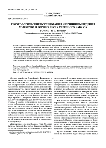15. Битюков Н.А., Шагаров Л.М. Влияние рубок главного пользования на водный баланс малых водосборов в буковых лесах Северо-Западного Кавказа // Лесоведение. 2020. № 4. 2020. С. 1–13. EDN: RCCEMC