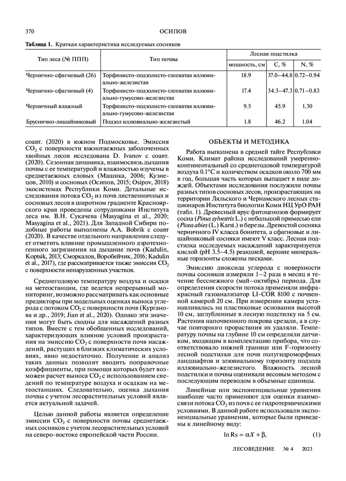 6. Осипов А.Ф. Эмиссия диоксида углерода с поверхности почвы спелого сосняка черничного в средней тайге Республики Коми // Лесоведение. 2015. № 5. С. 355–366. EDN: UMTGLV