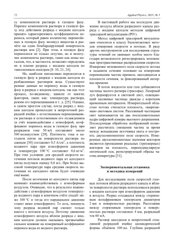 Ключевые фразы: цифровая трассерная визуализация (piv), газовые потоки, ЭЛЕКТРИЧЕСКИЙ РАЗРЯД, жидкий катод, атмосферное давление, воздух, перенос компонентов раствора в газовую фазу