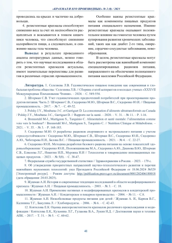 14. Кузина Л.Б. Сравнительный анализ существующих методов оценки степени резистентности крахмалов, крахмалопродуктов и пищевых ингредиентов / Кузина Л.Б., Лукин Н.Д., Кузьмина Л.Г., Никитина М.Ф., Соломина Л.С. // Пищевая промышленность. - 2023. - № 9. - С. 66-73.