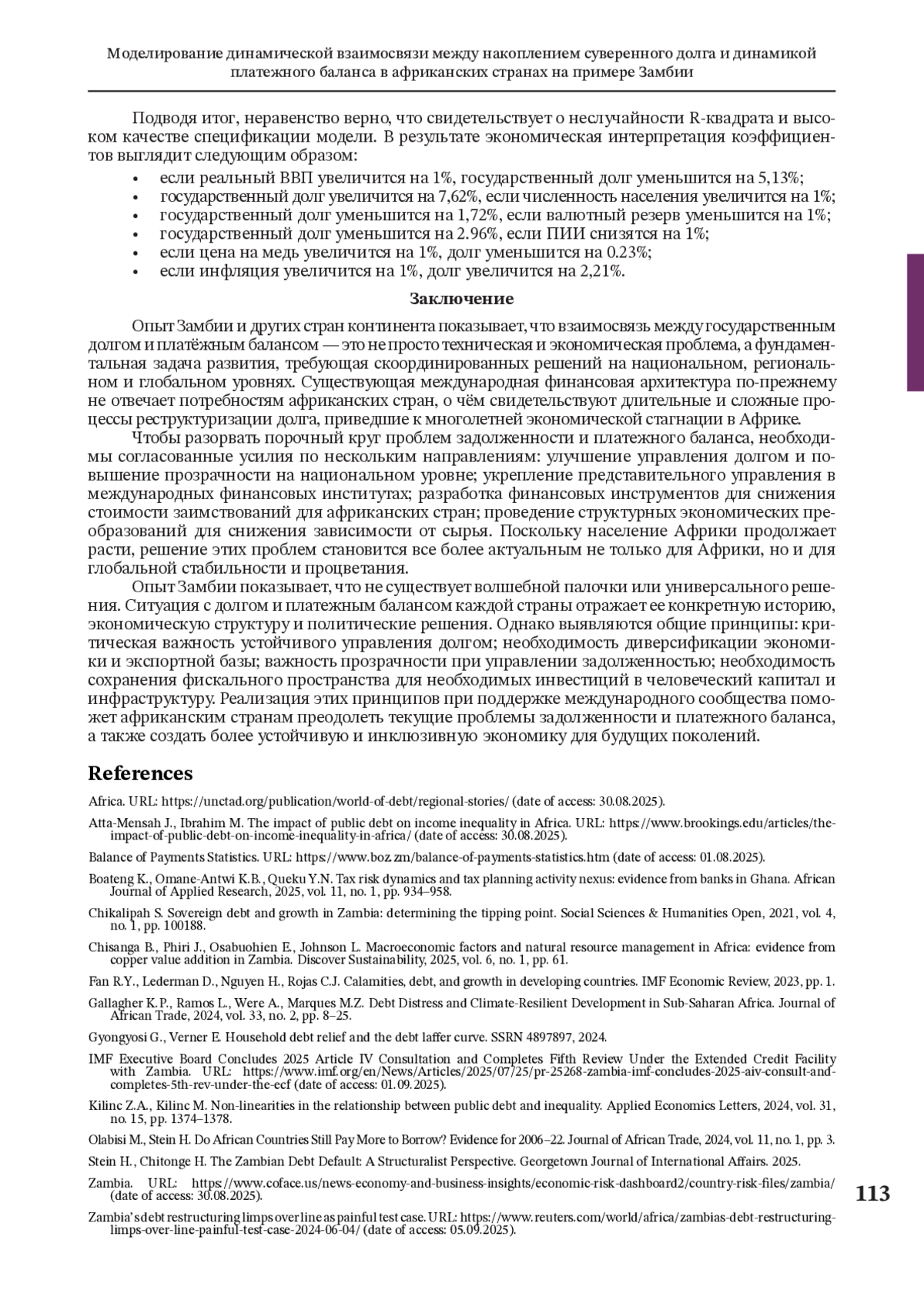5. Chikalipah S. Sovereign debt and growth in Zambia: determining the tipping point. Social Sciences & Humanities Open, 2021, vol. 4, no. 1, pp. 100188.