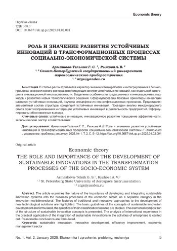 В статье рассматривается характер значимости выработки и интегрирования в бизнес- процессы экономического сектора хозяйствующих систем устойчивых инноваций, как отдельной категории в инновационной многоаспектности. Выделены особенности традиционных и инновационных подходов к развитию новых технологических решений. Сформулированы базовые ориентиры концепций развития устойчивых инноваций, изучена специфика их классификационных признаков. Представлен элементный состав структуры концепций устойчивых инноваций. Проведен анализ международного опыта практикоприменения интеграции устойчивых инноваций в деятельность предприятий. Сформулированы обоснованные выводы.