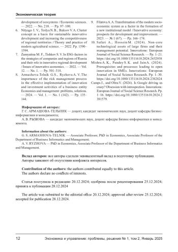9. Филатова А. А. Трансформация современной социально-экономической системы как фактор формирования новой институциональной модели //Инновационная экономика: перспективы развития и совершенствования. - 2023. - № 1 (67). - С. 166-174. EDN: SUISSX