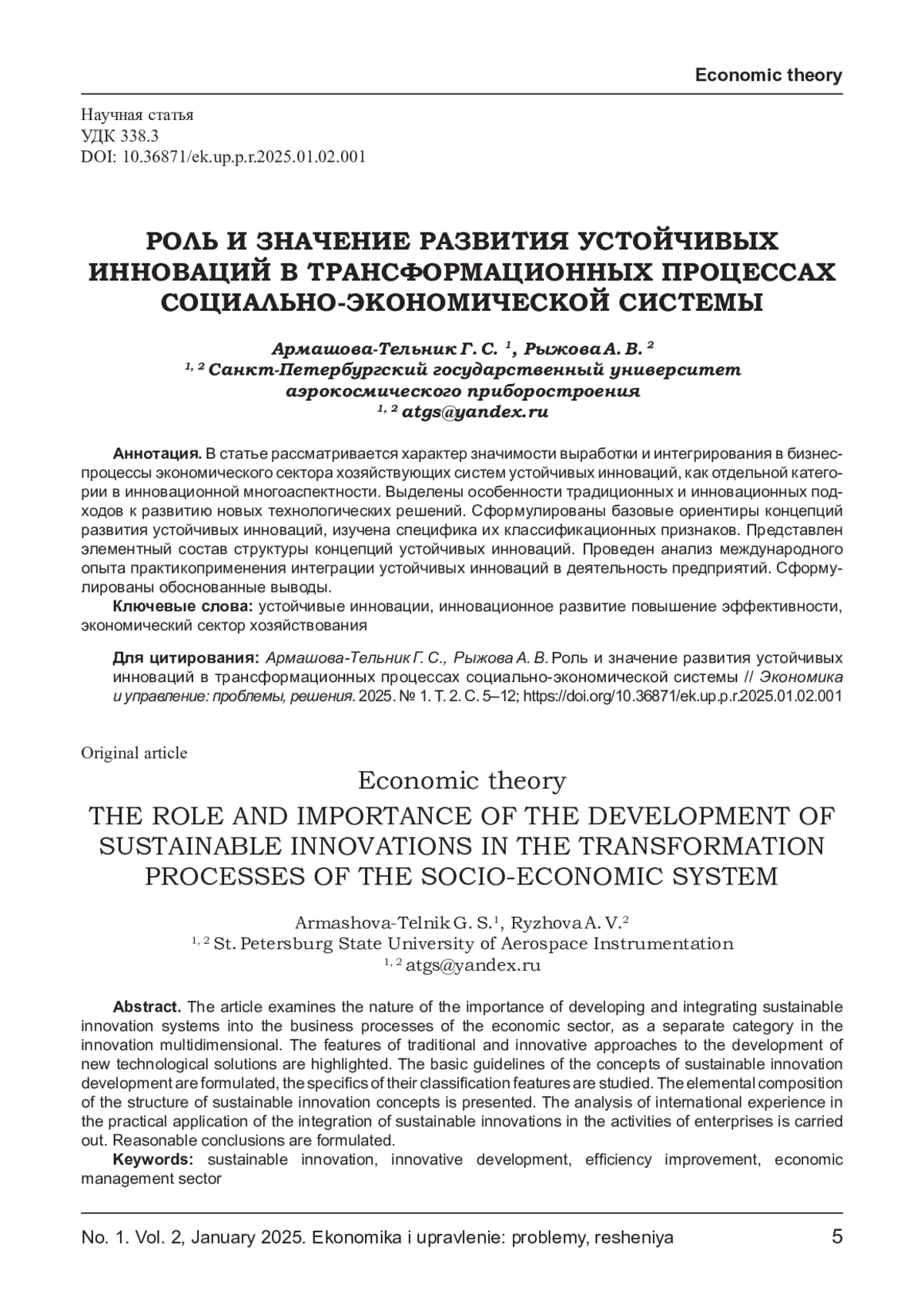 1. Константиниди Х. А., Сорокожердьев В. В., Рубин А. Г. Глобальная трансформация и устойчивость экономики современной России (по итогам научной конференции) //Экономическая наука современной России. - 2023. - №. 1 (100). - С. 96-101. EDN: CUNPSF