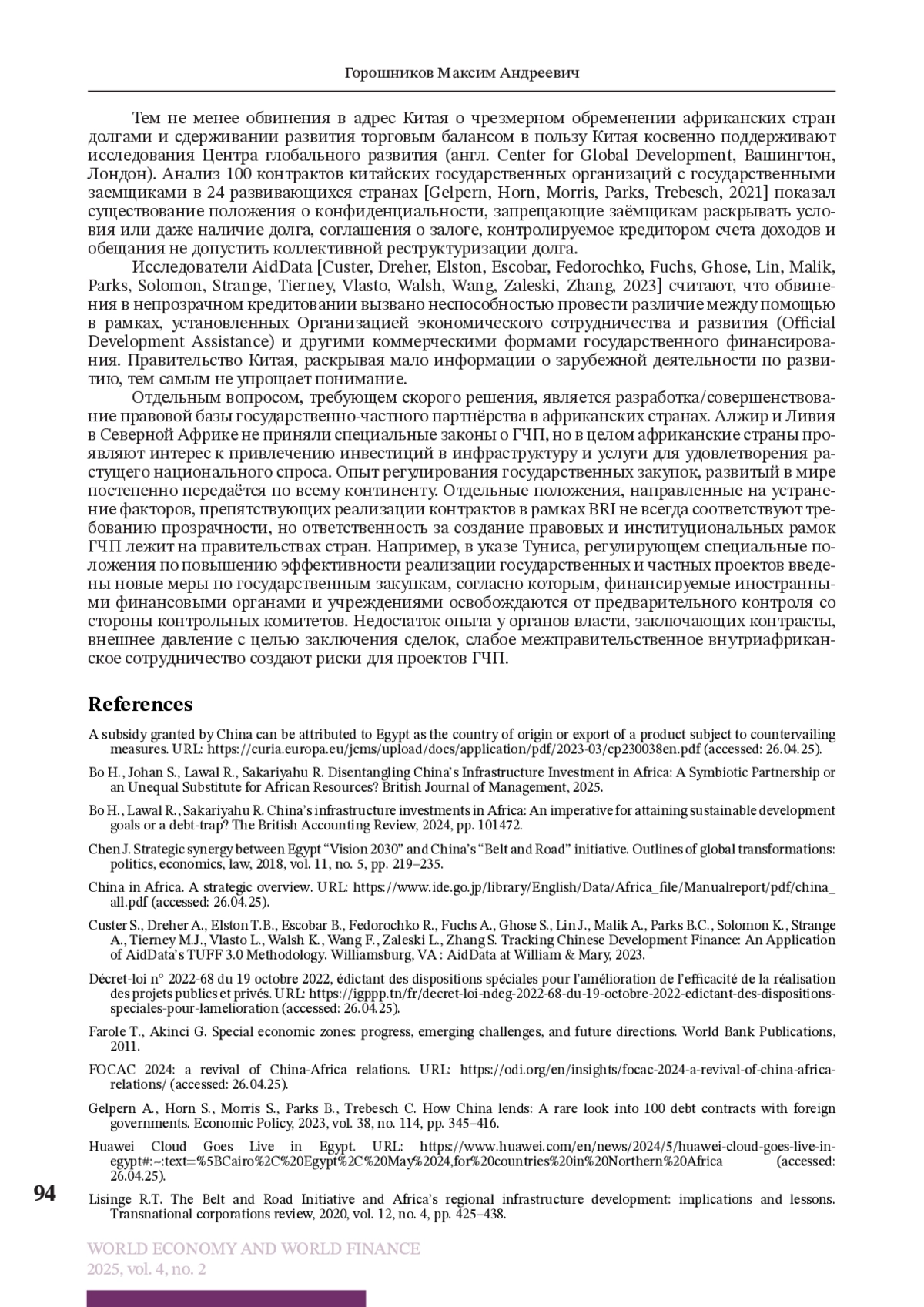 3. Bo H., Lawal R., Sakariyahu R. China’s infrastructure investments in Africa: An imperative for attaining sustainable development goals or a debt-trap? The British Accounting Review, 2024, pp. 101472.