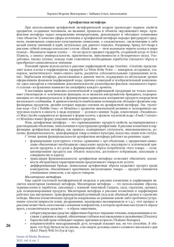 10. Köksal F.N. Metaphoric representation and aesthetic in advertising // Mind and Matter-Challenges and Opportunities in Cognitive Semiotics and Aesthetics. IntechOpen, 2022.