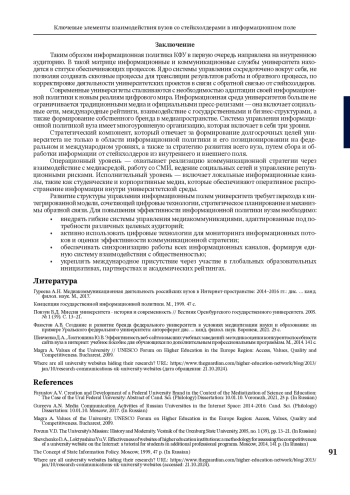1. Гуреева А.Н. Медиакоммуникационная деятельность российских вузов в Интернет-пространстве: 2014-2016 гг.: дис. … канд. филол. наук. М., 2017.