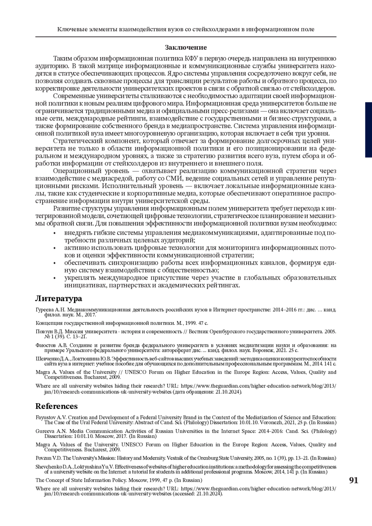 4. Фаюстов А.В. Создание и развитие бренда федерального университета в условиях медиатизации науки и образования: на примере Уральского федерального университета: автореферат дис.... канд. филол. наук. Воронеж, 2021. 25 c.