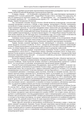В статье рассматривается изменения роли России в современной мировой торговле. Интеграция Российской экономики в глобальные цепочки добавленной стоимости представляют собой стратегический тренд экономического развития мировой экономики в целом. Рассматриваются перспективы расширения торгово-экономических связей России как в краткосрочном, так и в долгосрочном периодах. Особое место занимает рассмотрение различных подходов к решению задач по расширению несырьевого неэнергетического экспорта, импортозамещению и встраиванию России в цепочки добавленной стоимости. В работе используются такие методы исследования как статистический и экономический анализ, методы группировки, сравнения и информационного моделирования. Проведенный анализ позволил сформулировать следующие выводы: современная экономическая ситуация открывает перед Российской Федерацией существенные возможности в области развития несырьевого неэнергетического экспорта, реализации потенциала импортозамещения и углубления интеграции в глобальные производственные цепочки.