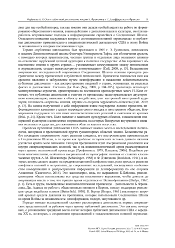 3. Фофанова А. Р. Бенджамин Франклин - первый публичный дипломат в истории Соединенных Штатов Америки // Молодой ученый. Международный научный журнал. 2021. № 46. С. 242-244.
