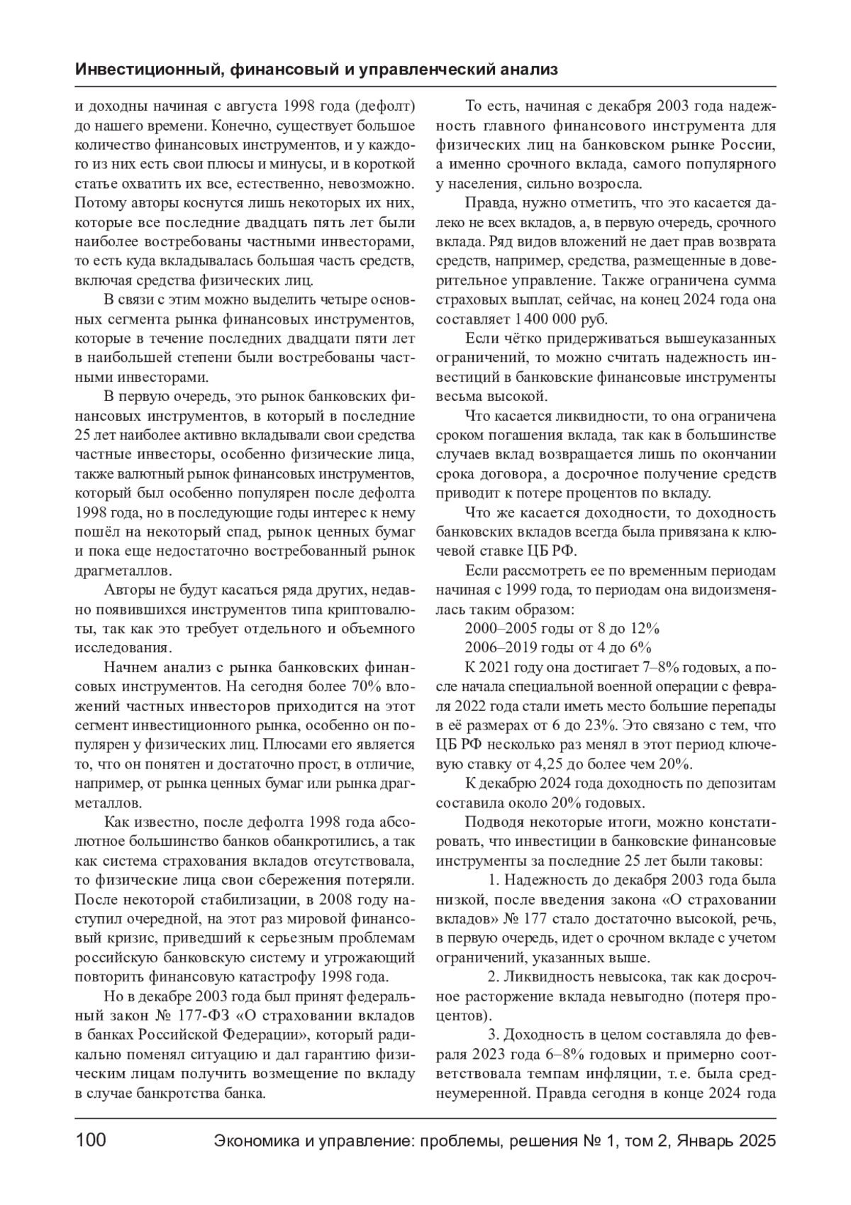 В настоящее время в Российской Федерации имеет место большой спектр финансовых инструментов. Сегодня перед частными инвесторами, особенно физическими лицам, стоит непростая задача выбора наиболее приемлемых, с их точки зрения, финансовых инструментов, естественно, с учетом современных условий, при которых финансовые инструменты были бы как можно надежней, то есть вероятность потери вложенных средств была бы минимальной, кроме того, обладали бы высокой ликвидностью, то есть в случае необходимости их можно было бы легко продать или купить, а также доходностью, которая хотя бы гарантировала сохранность средств от инфляции, а по возможности их преумножала. Отсюда необходим анализ основных финансовых инструментов, функционирующих в Российской Федерации, с точки зрения их ликвидности, надежности и доходности с учетом современных вызовов и реалий.