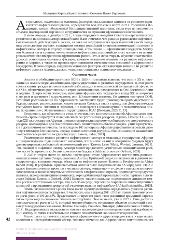Актуальность исследования основных факторов, оказывающих влияние на развитие африканского нефтегазового рынка, определяется тем, что еще в марте 2023 г. Российская Федерация, следуя обновленной Концепции внешней политики, взяла курс на увеличение объемов двусторонней торговли и сотрудничества со странами африканского континента.