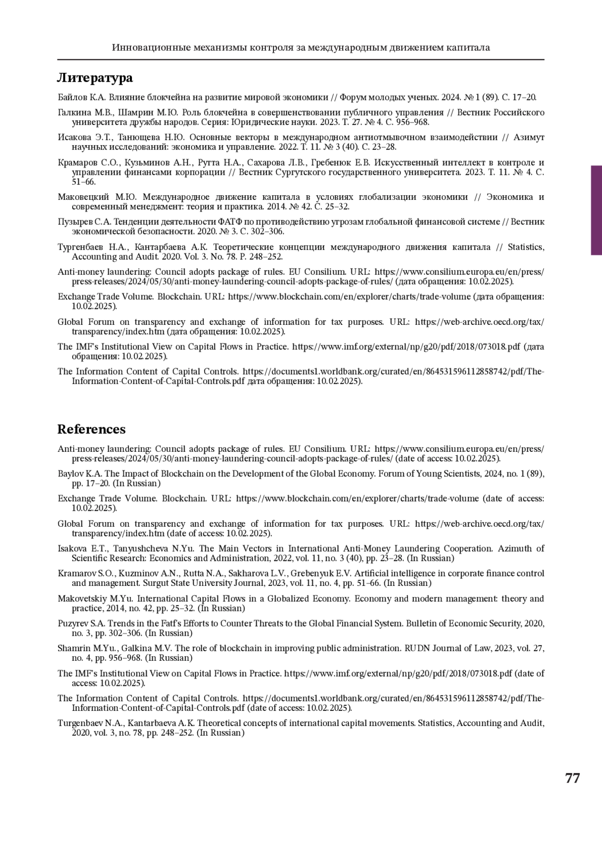 6. Пузырев С.А. Тенденции деятельности ФАТФ по противодействию угрозам глобальной финансовой системе // Вестник экономической безопасности. 2020. № 3. С. 302-306.