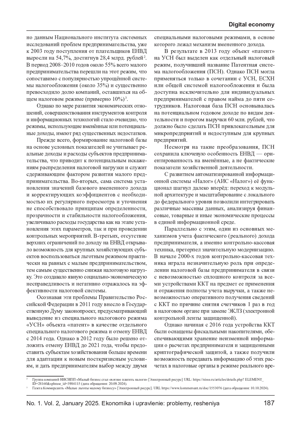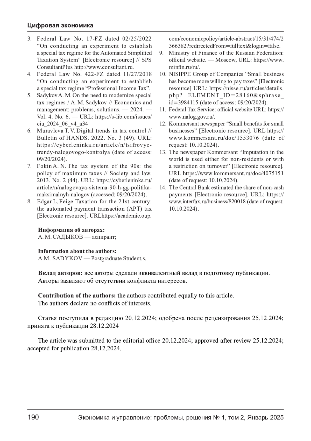 5. Садыков А. М. О необходимости модернизации специальных налоговых режимов / А. М. Садыков // Экономика и управление: проблемы, решения. - 2024. - Т. 4, № 6 URL: https://slib.com/issues/eiu_2024_06_v4_a34/. EDN: UHSFWT