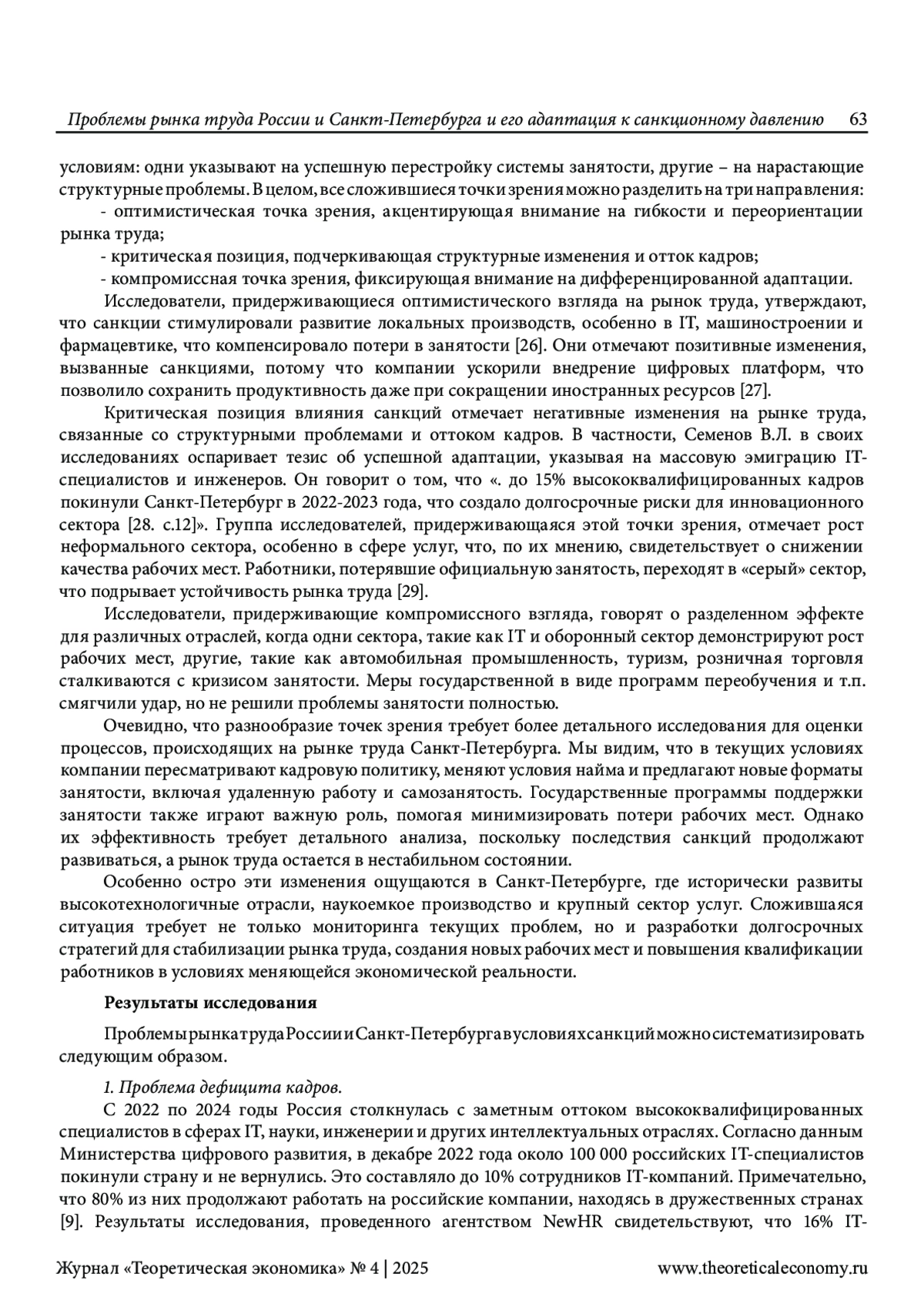 25. Ященко Н. Дефицит кадров в Санкт-Петербурге: причины и способы решения [Электронный ресурс] URL: // https://www.guestworkers.ru/blog/defitsit-kadrov-v-sankt-peterburge-prichiny-i-sposoby-resheniya (Дата обращения: 20.02.2025).