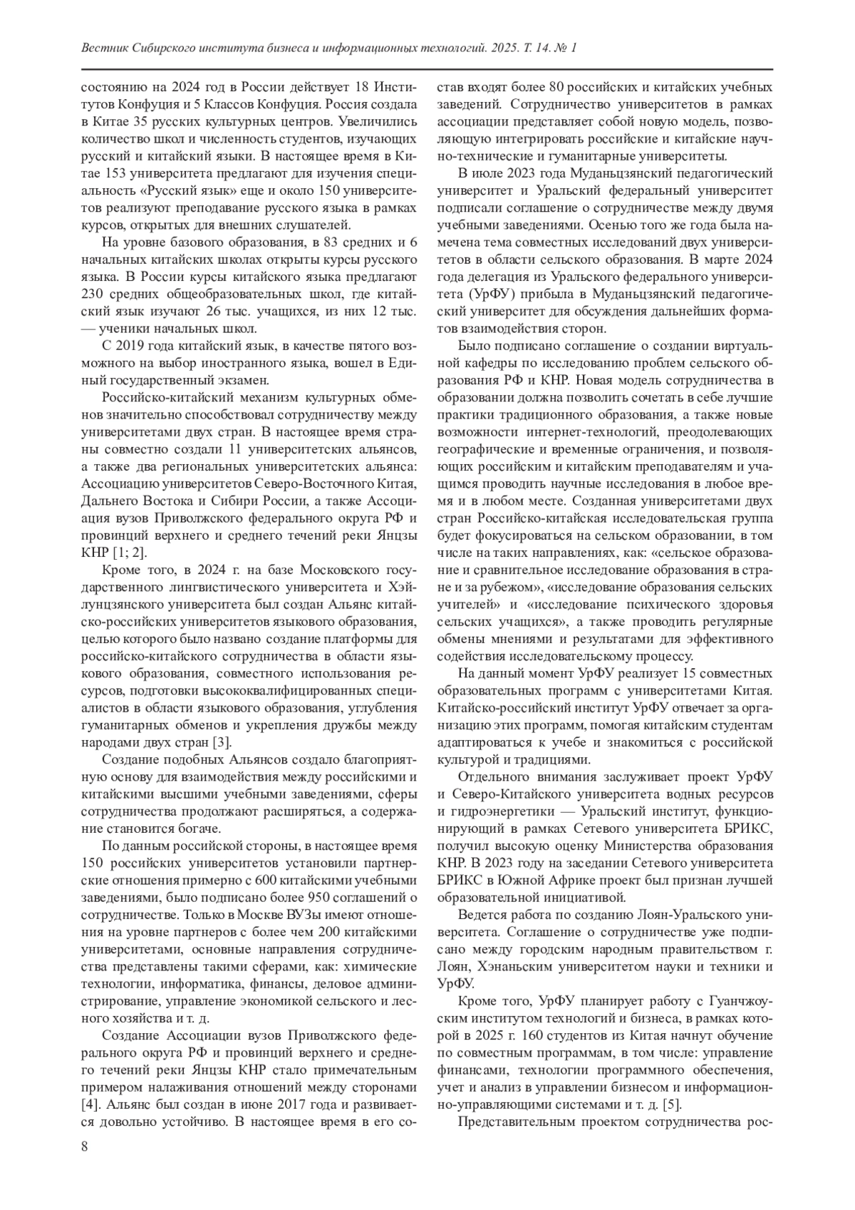 8. 中俄教育交流合作:规模与项目 [Китайско-российские образовательные обмены и сотрудничество: масштабы и проекты] // 汉语热点录. 06.12.2021. URL: https://baijiahao.baidu.com/s?id=1718412000850665210&wfr=spider&for=pc&searchword=中俄教育合作 (дата обращения: 29.01.2025).