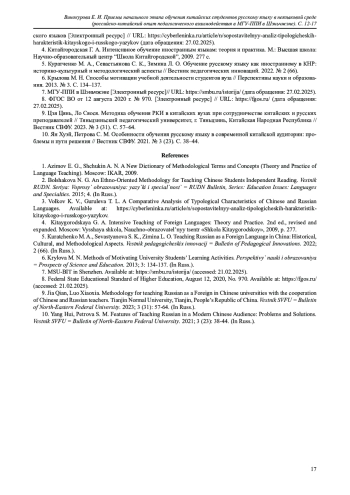 10. Ян Хуэй, Петрова С. М. Особенности обучения русскому языку в современной китайской аудитории: проблемы и пути решения // Вестник СВФУ. 2021. № 3 (23). С. 38-44.